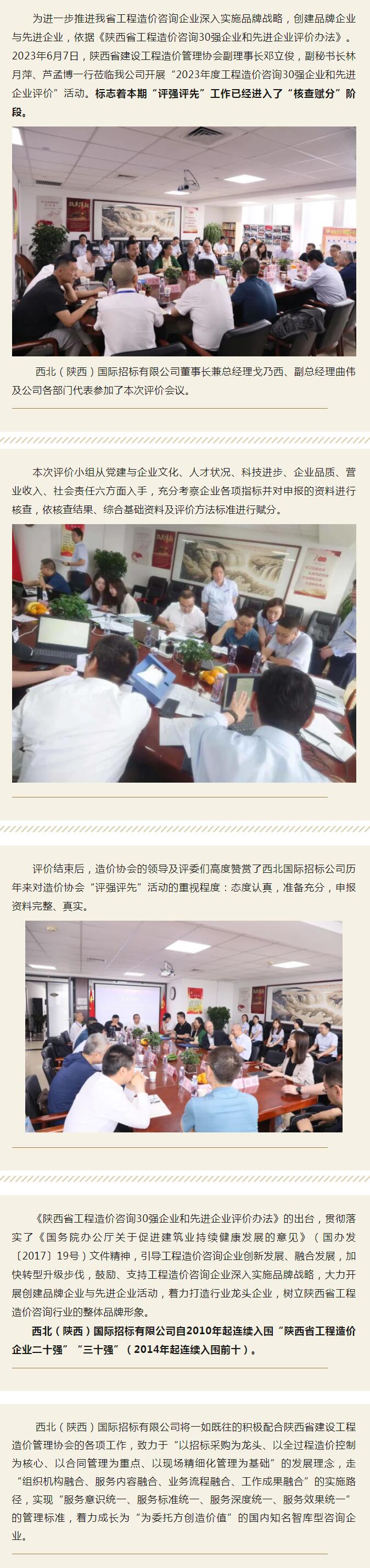 陜西省建設工程造價管理協(xié)會蒞臨我公司開展“2023年度工程造價咨詢30強企業(yè)和先進企業(yè)評價”活動