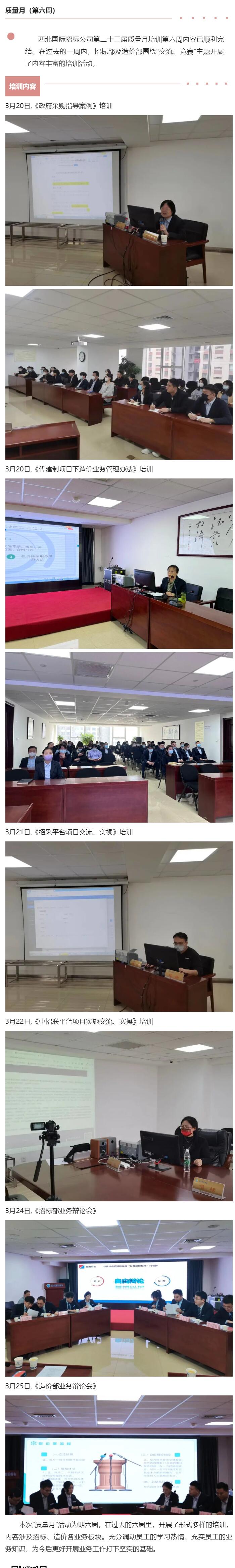 西北國際招標(biāo)公司第二十三屆“”質(zhì)量月”培訓(xùn)活動(dòng)報(bào)道(第六周)