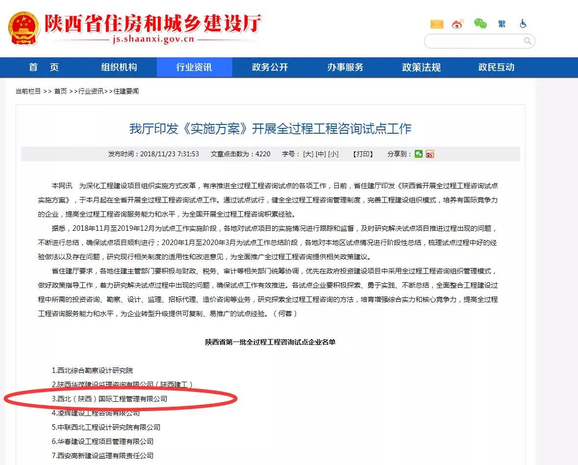 西北(陜西)國(guó)際工程管理有限公司入選陜西省住建廳第一批全過程工程咨詢?cè)圏c(diǎn)企業(yè)名單