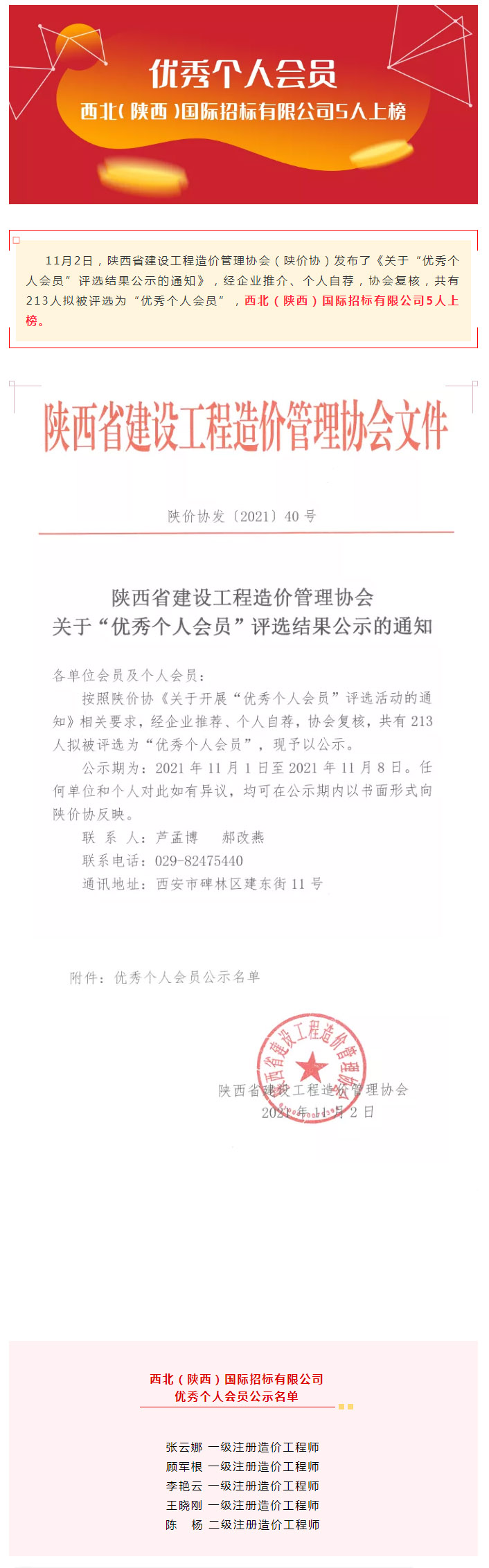 “優(yōu)秀個人會員”名單公示!我公司5人上榜!