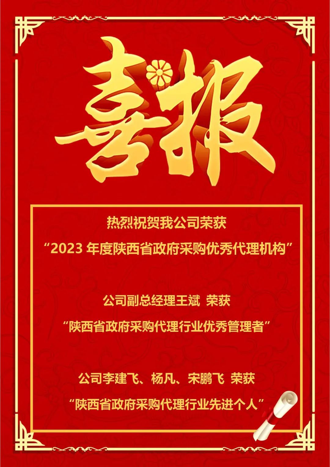 熱烈祝賀我公司榮獲 “2023年度陜西省政府采購(gòu)優(yōu)秀代理機(jī)構(gòu)”