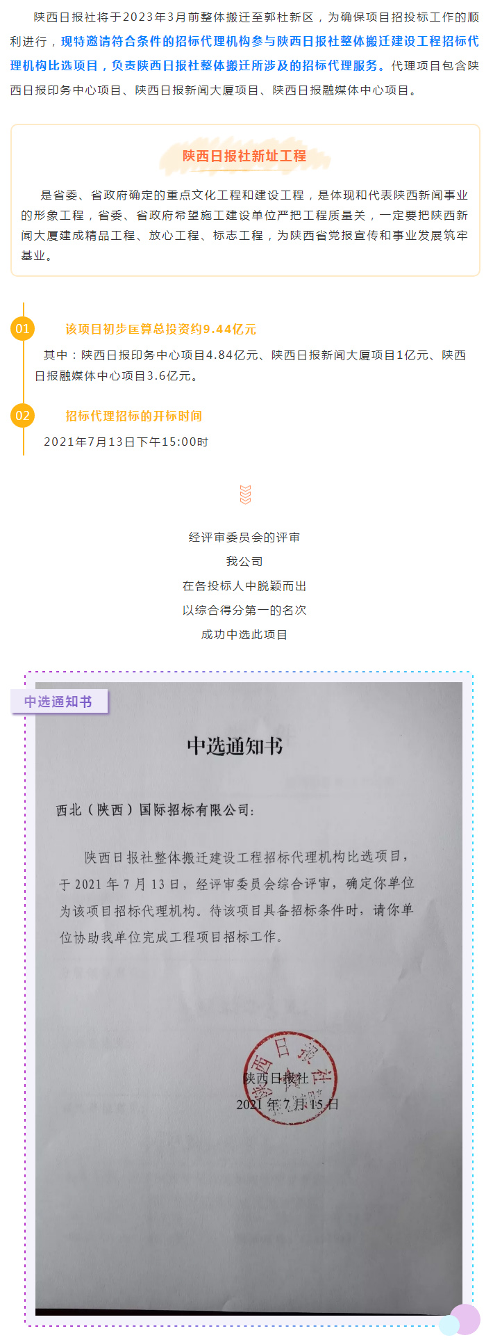 我公司成功中選陜西日報(bào)社整體搬遷建設(shè)工程項(xiàng)目