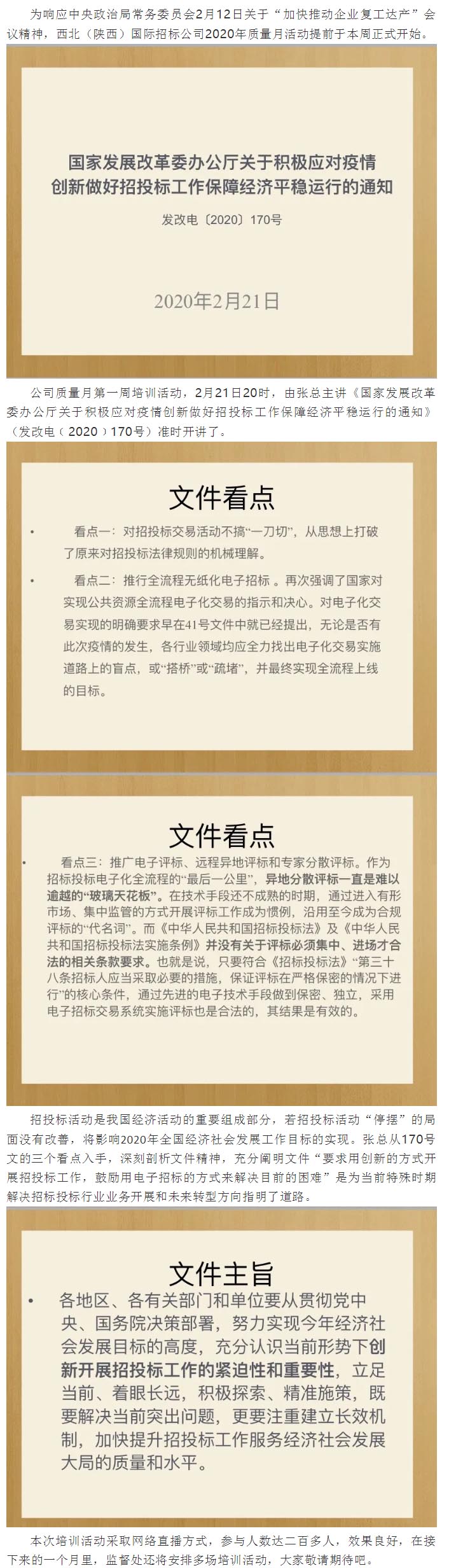 公司質(zhì)量月第一周培訓活動——學習發(fā)改電﹝2020﹞170號