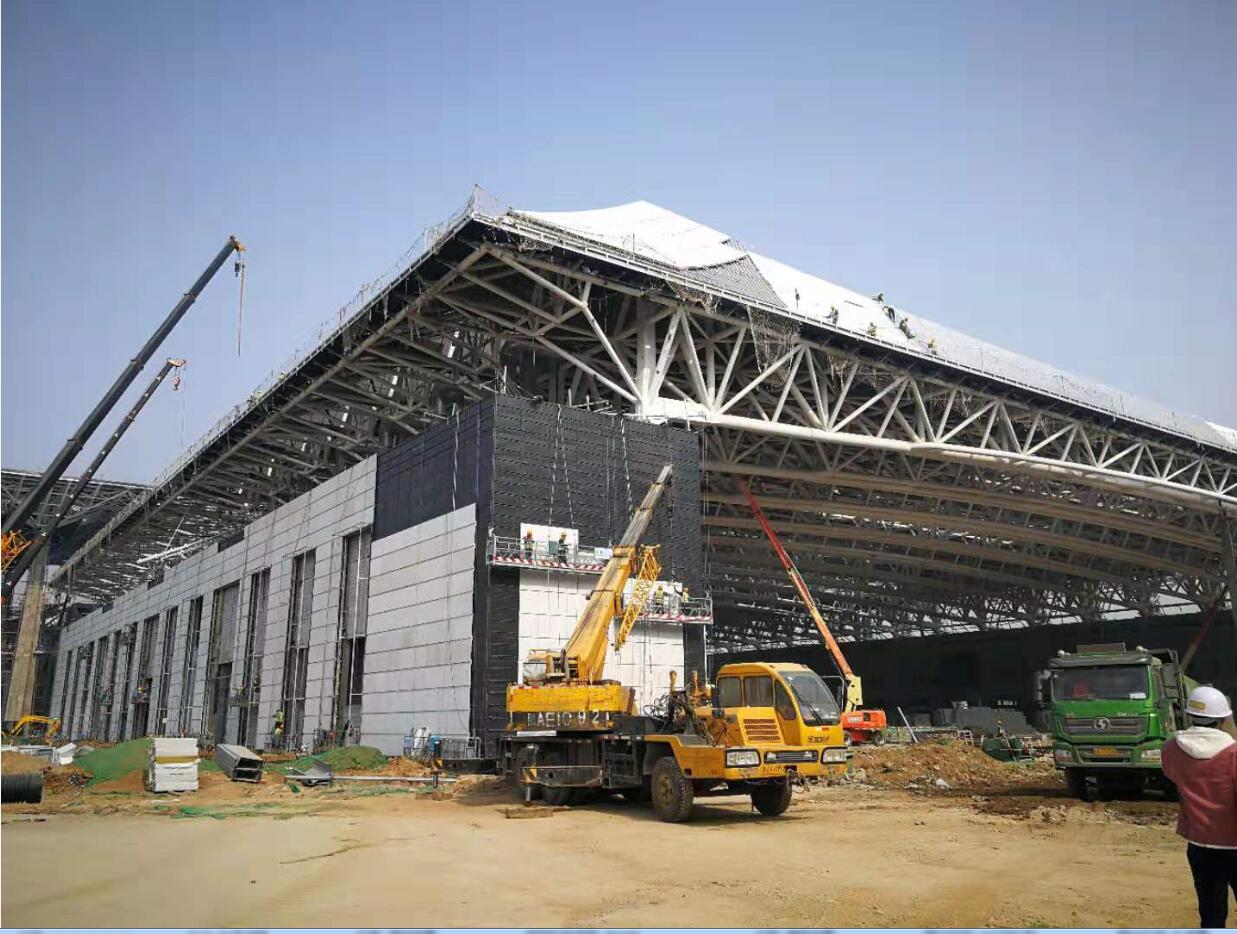在華潤集團項目部人員的帶領(lǐng)下,我們首先參觀了會議、展覽中心的施工現(xiàn)場,項目負責(zé)人董蘋、孫杰對項目概況、建筑結(jié)構(gòu)、單方造價等方面做了簡要講解。