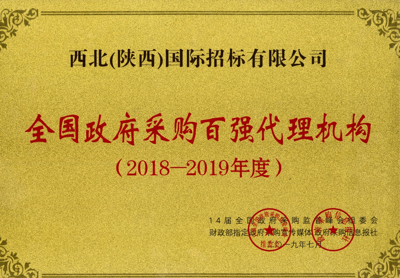 熱烈祝賀西北(陜西)國際招標(biāo)有限公司榮獲“全國政府采購百強(qiáng)代理機(jī)構(gòu)”稱號