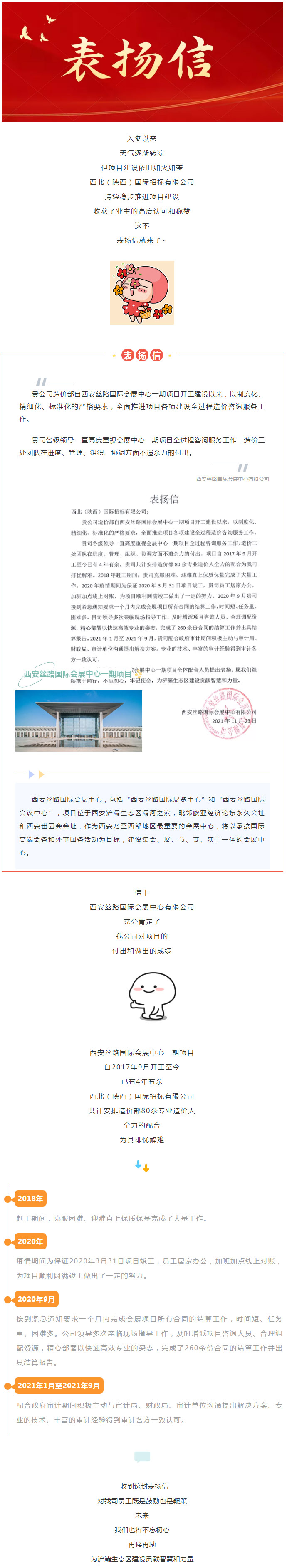 我司喜獲西安絲路國際會展中心有限公司表揚(yáng)信