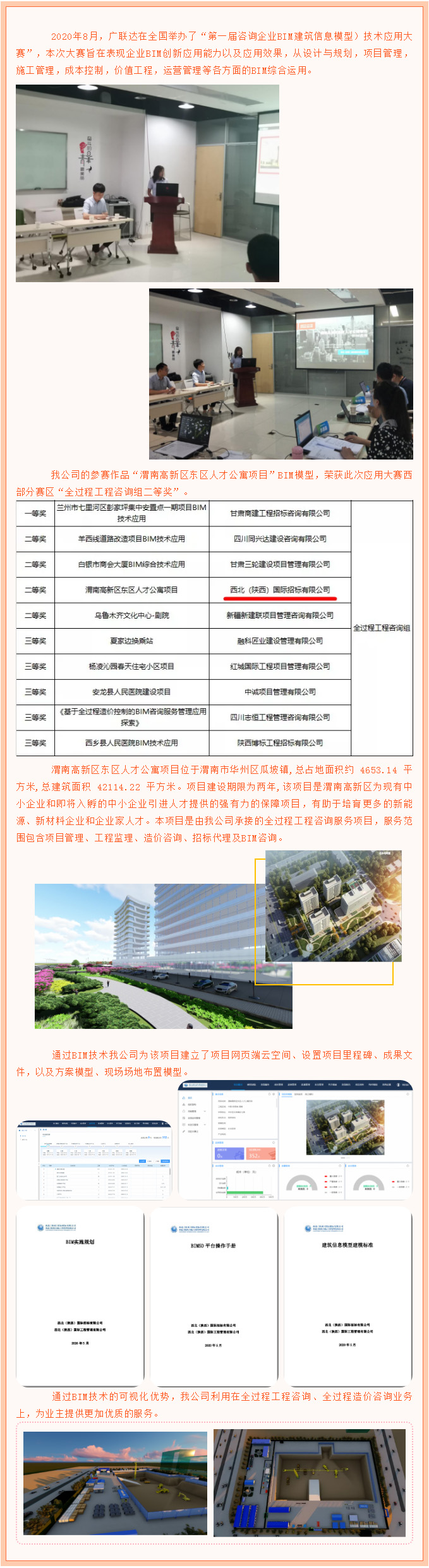我公司獲“廣聯(lián)達(dá)第一屆咨詢企業(yè)BIM(建筑信息模型)技術(shù)應(yīng)用大賽”第二名