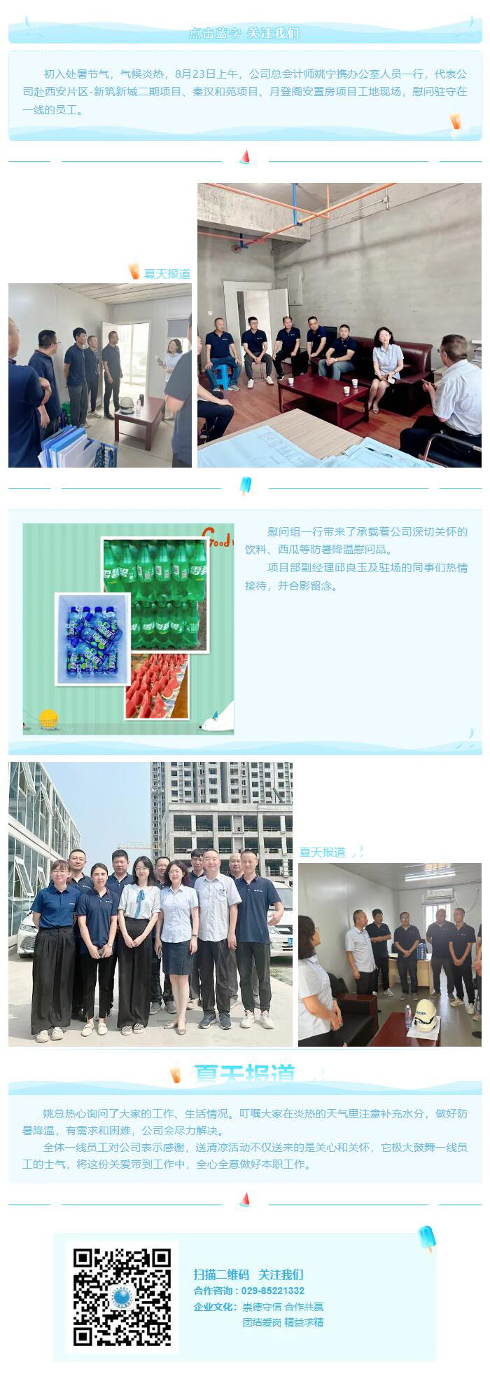 炎炎烈日公司慰問送清涼--公司領(lǐng)導(dǎo)慰問駐西安區(qū)項(xiàng)目一線工作人員