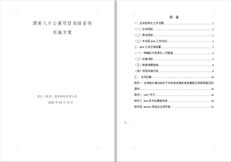 我公司于2020年4月成功中標(biāo)渭南高新區(qū)東區(qū)人才公寓項(xiàng)目全過(guò)程工程咨詢,是我公司首例包含BIM技術(shù)應(yīng)用的全過(guò)程工程咨詢項(xiàng)目。BIM中心對(duì)成立以來(lái)的首個(gè)項(xiàng)目格外重視,在項(xiàng)目前期充分準(zhǔn)備,工作有序開(kāi)展。在鞏總、王東總的指導(dǎo)下,完成了部分階段性工作。疫情期間,BIM中心成員多方搜集資料,深入學(xué)習(xí),不斷調(diào)整思路,多次在綜合管理部?jī)?nèi)部、渭南項(xiàng)目部通過(guò)視頻會(huì)議的形式,修改討論,完成了實(shí)施方案從0到1的編制工作,明確了本項(xiàng)目的總體目標(biāo)與工作范圍,對(duì)BIM應(yīng)用做出了準(zhǔn)確的規(guī)劃與部署。
