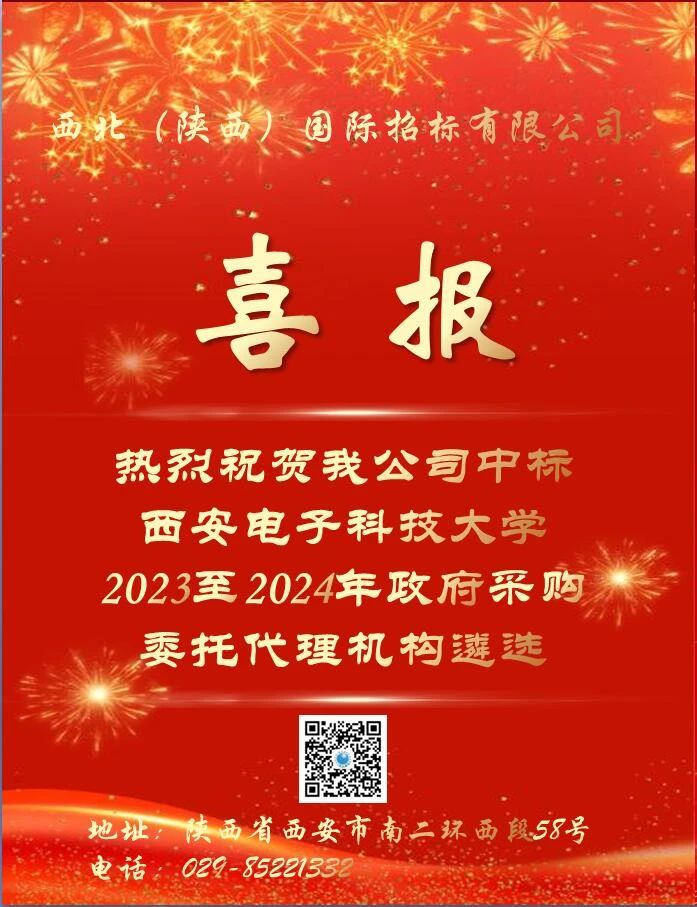 熱烈祝賀我公司中標西安電子科技大學2023至2024年政府采購委托代理機構(gòu)遴選