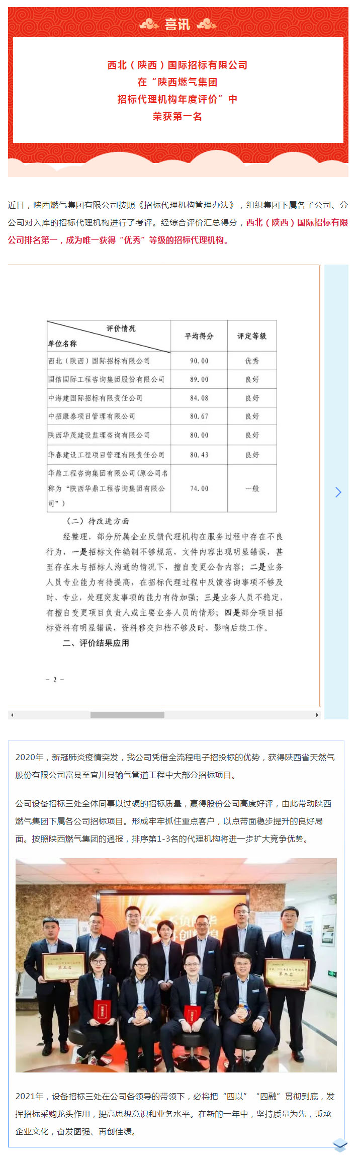 我公司在“陜西燃?xì)饧瘓F 招標(biāo)代理機構(gòu)年度評價”中 榮獲第一名