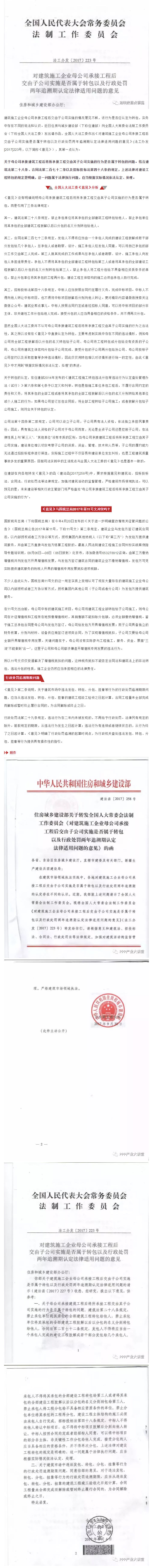 全國(guó)人大法工委復(fù)函住建部!母公司中標(biāo)子公司施工屬于轉(zhuǎn)包?